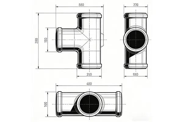 Функция: для соединения трех трубопроводов одного диаметра, для реализации шунтирования трубопровода (ответвление основного трубопровода) или слияния (многоответвленный вход в главный трубопровод), является ключевым компонентом ветви / слияния трубопровода.